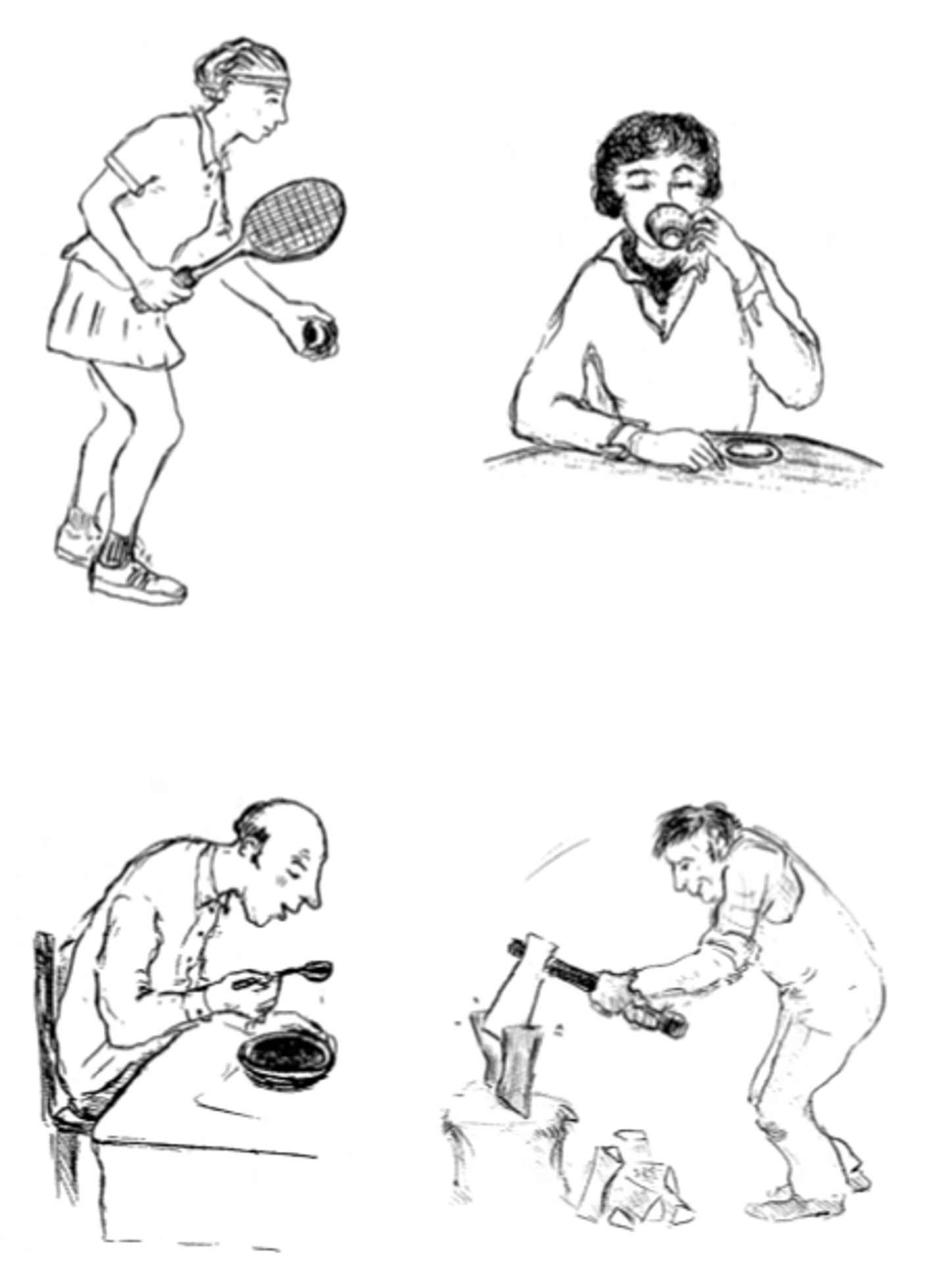 - Alle øvelser lægger op til, at den afasiramte handler aktivt og arbejder kommunikativt
