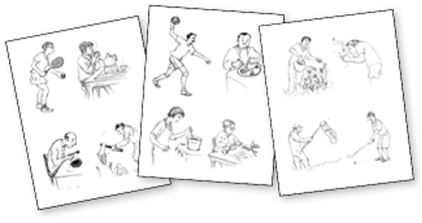 - Billederne skal alle repræsentere den samme sætningsstruktur (subjekt-verbum-direkte objekt)